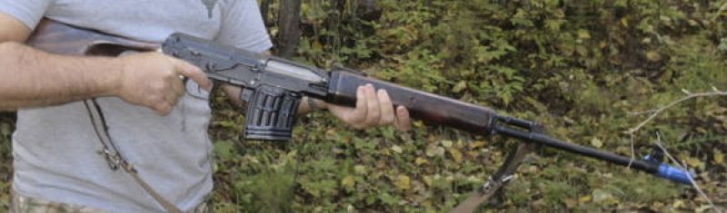 Abaixo um fuzil semi-auto 7,62x54R, note a proteção com fita para proteger a boca do cano