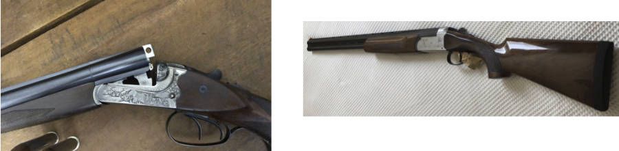Abaixo o detalhe da articulação de um Krieghoff (lado a lado) e uma espingarda 12GA Boito com canos sobrepostos