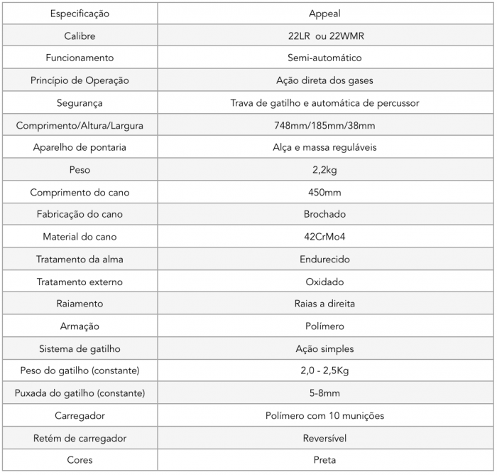 Modelo “Bullpup” disponível em .22LR e .22WMR e AMBIDESTRA